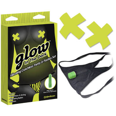 GLOW IN THE DARK VIBRATING CROTCHLESS PANTY AND PASTIES SET