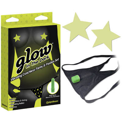 GLOW IN THE DARK VIBRATING CROTCHLESS PANTY AND PASTIES SET