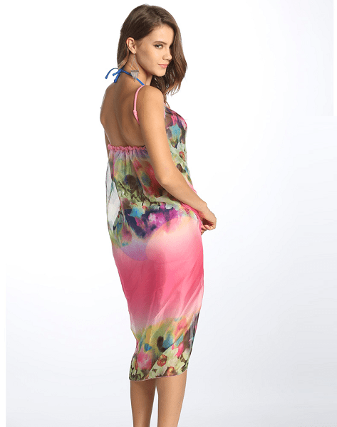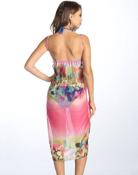 Sexy Pink Floral Flowers Printed Beach Cover Up.