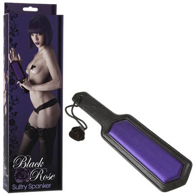Spank your lover's naughty bottom into submission. The Sultry Spanker is a sturdy, dual-textured paddle with a touch of luxury. The back side is pure smooth realistic leather for a stingy smack, while the front has a paddle purple panel...