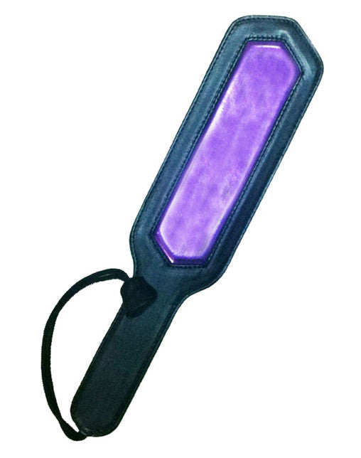 Leather Spanker for Adult Fun with purple area and rose tail.