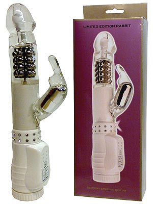 Clear White 15.25 cm (6'') Pearl Vibrator with Rabbit Clit Stimulator