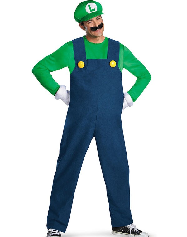Mens Deluxe Luigi Costume - Blue, Green