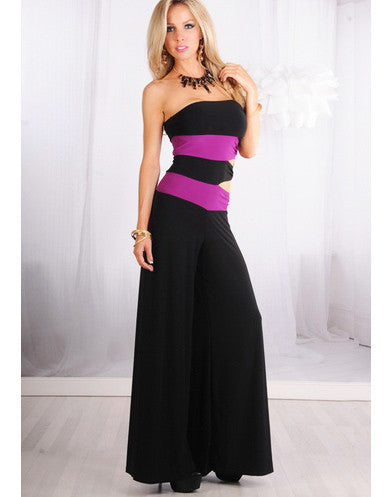 Strapless Cut Out Side Jumpsuit - Black and Purple